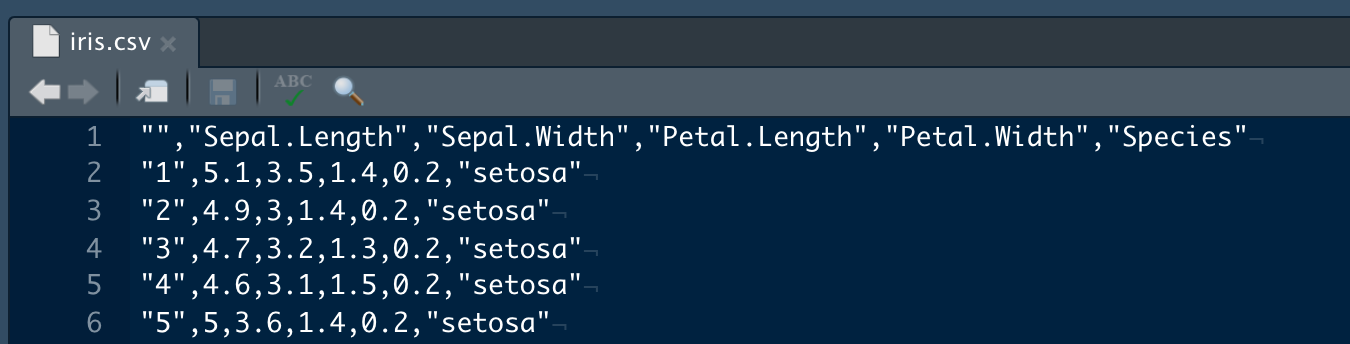 Out in the wild, one of the most common types of flat file you will find is a delimited file. In these files, bits of data are separated by a common character ("delimiter"). Common types include comma separated values (CSV), tab-separated values, and space-delimited. When these files are opened by a program like R, SAS, or Excel, those programs can figure out what the delimiter is and use it to split data into columns.